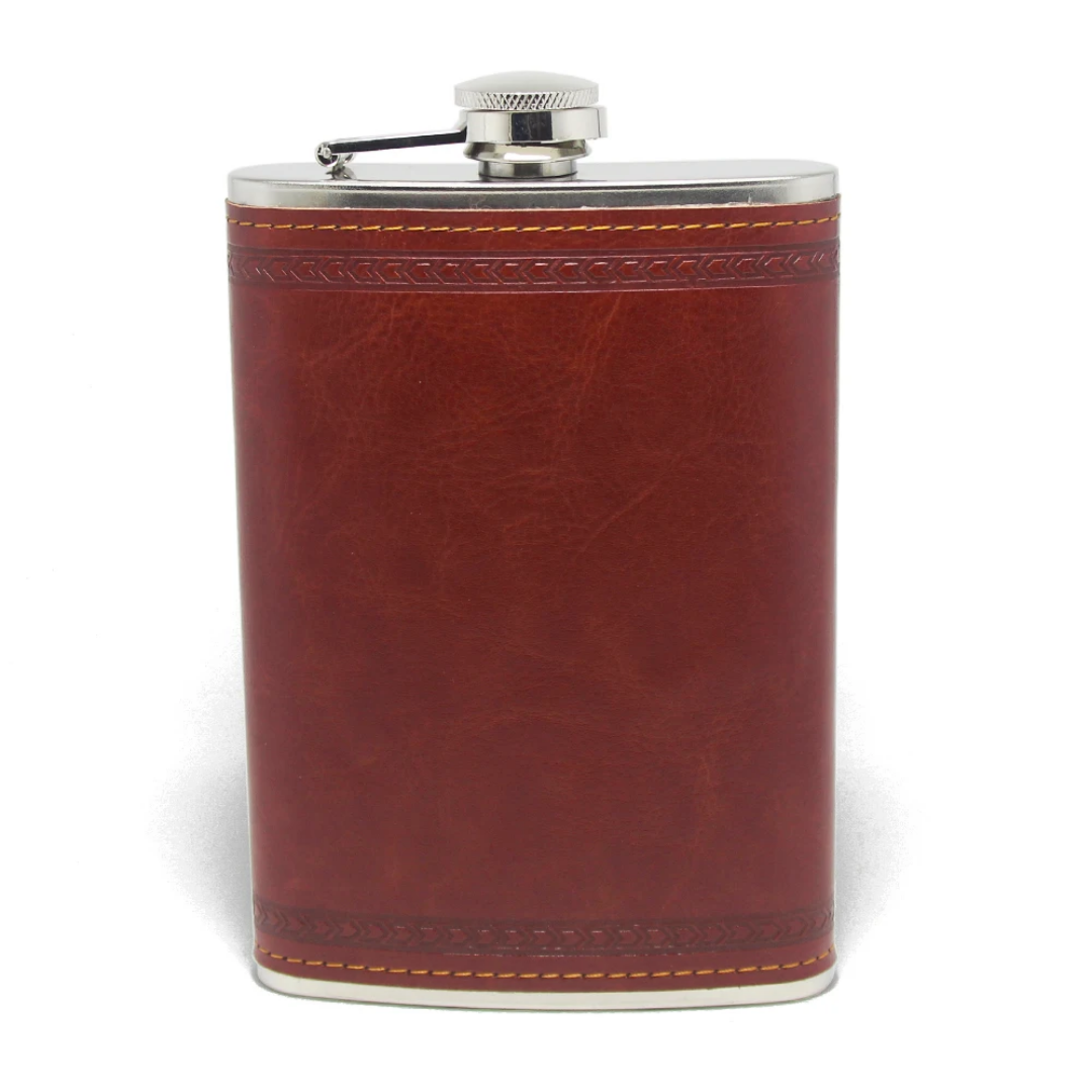 Geschenkset für Herren – Edelstahl-Flachmann mit Trichter, Mini-Flasche & Pfeife im Leder-Look
