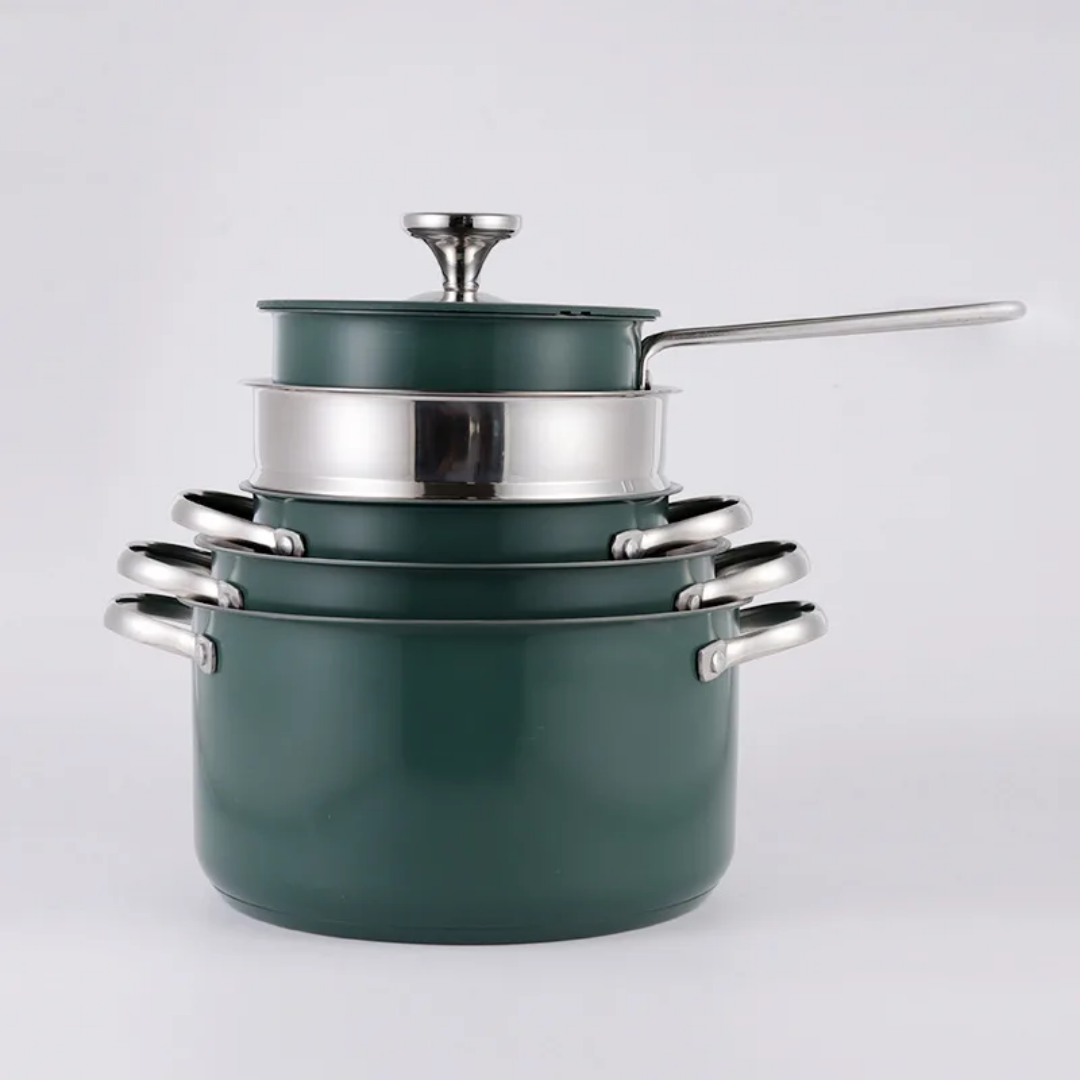 Dieses edle 5-teilige Kochgeschirr-Set im modernen Granit-Design kombiniert Qualität, Funktionalität und Stil.